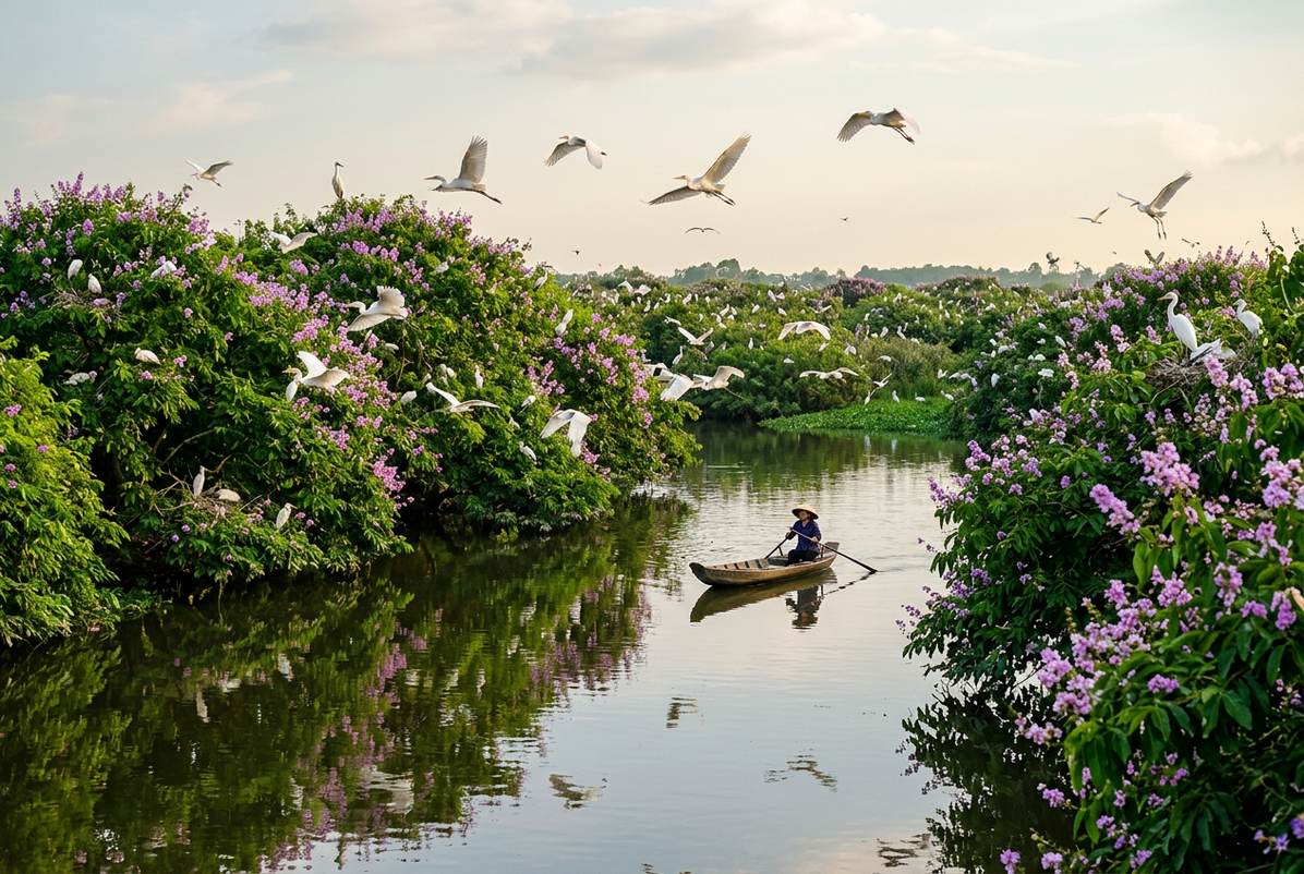 Giữa lòng Đồng bằng sông Cửu Long trù phú, Vườn Cò Bằng Lăng hiện lên như một bức tranh thủy mặc xanh mát, nơi những cánh cò bay lả trên nền trời trong vắt. Không chỉ là một sân chim tự nhiên rộng lớn, đây còn là biểu tượng của sự bình yên làng quê, nơi thiên nhiên và con người hòa quyện tạo nên bản tình ca bất tận của miền sông nước.